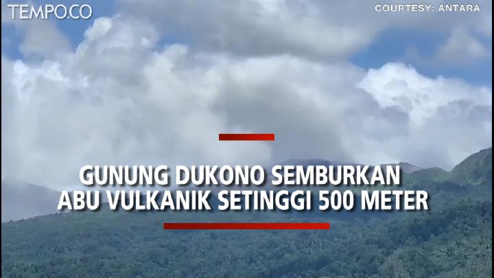 Gunung Dukono di Kabupaten Halmahera Utara, Maluku Utara, Kamis, 15 April, kembali mengalami erupsi dengan menyemburkan abu vulkanik setinggi 500 meter. Peristiwa itu sudah terjadi sejak tiga hari terakhir, sehingga menyebabkan Kota Tobelo dihujani abu vulkanik.